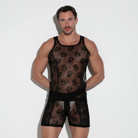 Slim fit tank top made of super soft stretch lace fabric. Piping details around the neckline, armhole and a high frequency print on chest.
