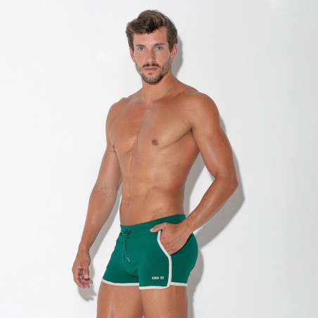 Slim fit printed mini short with stretch technology. Off-white side stripe detail with ribbed finishing on waist and a 2” inch /5cm inseam. Our iconic logo in high frequency on thigh.