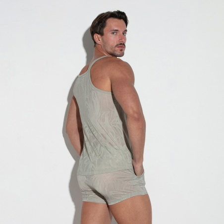 Slim fit tank top made with super soft translucent stretch jacquard fabric. Our iconic CODE 22 logo printed in high frequency on chest.