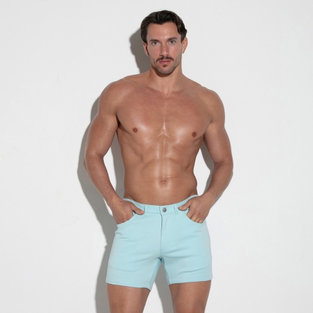 Pantalón corto aqua semi ajustado fabricado con tecnología elástica. Tiro bajo con cierre cremallera y 5 bolsillos. Logo icónico de silicona en la cinturilla.