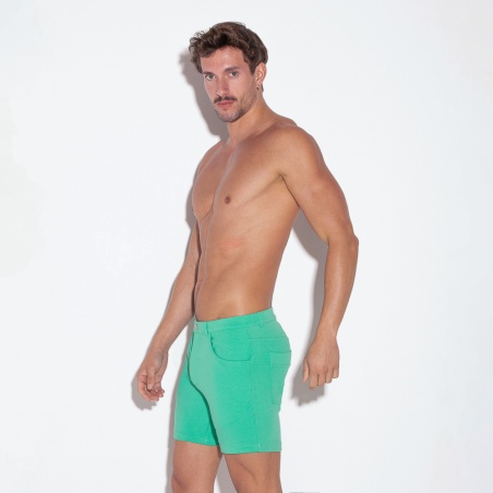 Pantalón corto verde menta semi ajustado fabricado con tecnología elástica. Tiro bajo con cierre cremallera y 5 bolsillos. Logo icónico de silicona en la cinturilla.
