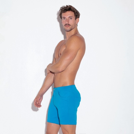 Pantalón corto turquesa blue semi ajustado fabricado con tecnología elástica. Tiro bajo con cierre cremallera y 5 bolsillos. Logo icónico de silicona en la cinturilla.