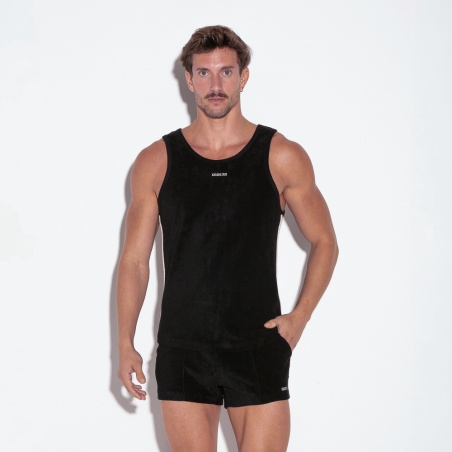 Camiseta tank corte recto con tejido de rizo suave y ligero. Escote y sisa acabados con vivos y nuestro icónico logo bordado en el pecho.
