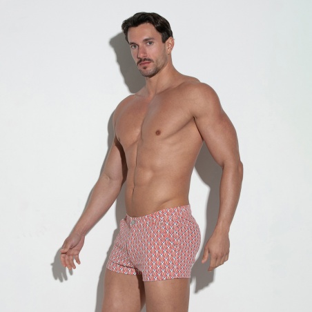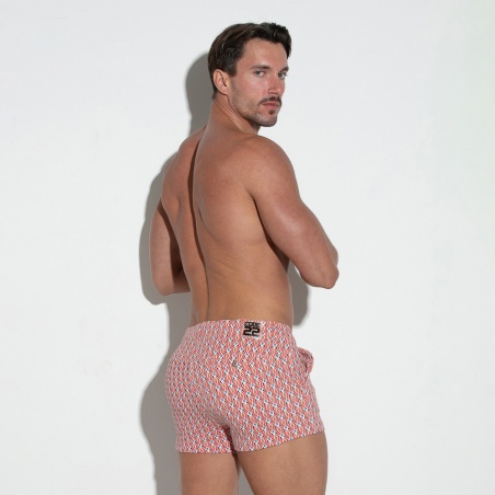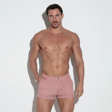 Short corail ajusté fabrique en technologie stretch. Coupe de taille basse avec braguette a fermeture éclair et poches, avec un entrejambe de 5.5cm. Écusson iconique en silicone à ceinture l'arrière.